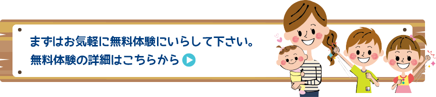 - →初めてのお友だちデビューでちょっぴり不安なママも無料でレッスン体験に参加して雰囲気をつかめます。
